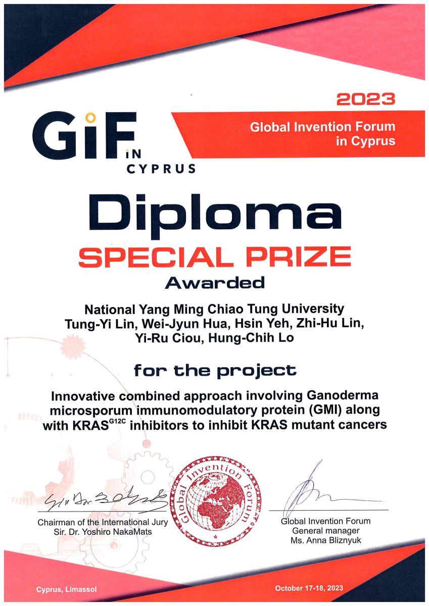 2023塞普勒斯國際發明展 GMI專題榮獲金牌奬及特別奬